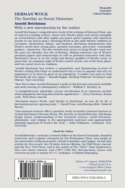 Arnold Beichman's comprehensive study of the writings of Herman Wouk, one of America's leading writers, shows how Wouk's plays and novels exemplify an extraordinary and often highly perceptive preoccupation with American society in war and in peace. Situating Wouk in the same literary tradition as Cervantes, Richardson, Balzac, and Dickens, Beichman demonstrates that Wouk's novels have strong plots, moralist outcomes, and active--essentially positive--characters. The new introduction serves to bring Wouk's work over the past two decades into the reckoning.