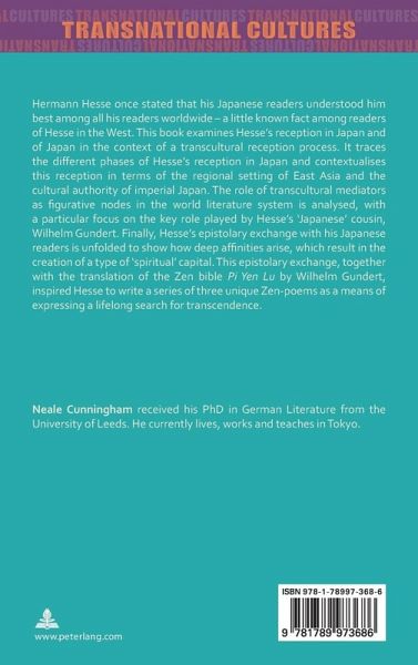 Hermann Hesse once stated that his Japanese readers understood him best among all his readers worldwide - a little known fact among readers of Hesse in the West. This book examines Hesse's reception in Japan and of Japan in the context of a transcultural reception process. It traces the different phases of Hesse's reception in Japan and contextualises this reception in terms of the regional setting of East Asia and the cultural authority of imperial Japan. The role of transcultural mediators as figurative nodes in the world literature system is analysed, with a particular focus on the key role played by Hesse's «Japanese» cousin, Wilhelm Gundert. Finally, Hesse's epistolary exchange with his Japanese readers is unfolded to show how deep affinities arise, which result in the creation of a type of «spiritual» capital. This epistolary exchange, together with the translation of the Zen bible Pi Yen Lu by Wilhelm Gundert, inspired Hesse to write a series of three unique Zen-poems as a means of expressing a lifelong search for transcendence.