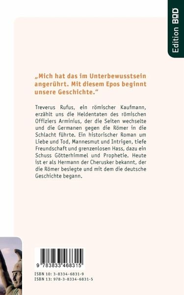 Treverus Rufus, ein römischer Kaufmann, erzählt uns die Heldentaten des römischen Offiziers Arminius, der die Seiten wechselte und die Germanen gegen die Römer in die Schlacht führte. Ein historischer Roman um Liebe und Tod, Mannesmut und Intrigen, tiefe Freundschaft und grenzenlosen Hass, dazu ein Schuss Götterhimmel und Prophetie. Heute ist er als Hermann der Cherusker bekannt, der die Römer besiegte und mit dem die deutsche Geschichte begann.