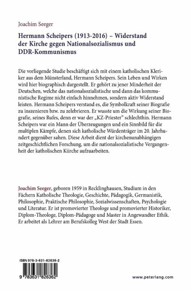 Die vorliegende Studie beschäftigt sich mit einem katholischen Kleriker aus dem Münsterland, Hermann Scheipers. Sein Leben und Wirken wird hier biographisch dargestellt. Er gehört zu jener Minderheit der Deutschen, welche das nationalsozialistische und dann das kommunistische Regime nicht einfach hinnehmen, sondern aktiv Widerstand leisten. Hermann Scheipers verstand es, die Symbolkraft seiner Biografie zu inszenieren bzw. zu zelebrieren. Er wusste um die Wirkung seiner Biografie, seines Rufes, denn er war der "KZ-Priester" schlechthin. Hermann Scheipers war ein Mann der Überzeugungen und ein Sinnbild für die multiplen Kämpfe, denen sich katholische Würdenträger im 20. Jahrhundert gegenüber sahen. Diese Arbeit dient der kirchenunabhängigen zeitgeschichtlichen Forschung, um die nationalsozialistische Vergangenheit der katholischen Kiirche aufzuarbeiten.