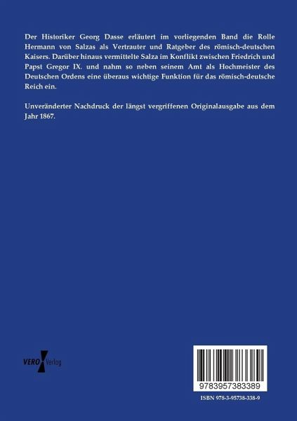 Der Historiker Georg Dasse erläutert im vorliegenden Band die Rolle Hermann von Salzas als Vertrauter und Ratgeber des römisch-deutschen Kaisers. Darüber hinaus vermittelte Salza im Konflikt zwischen Friedrich und Papst Gregor IX. und nahm so neben seinem Amt als Hochmeister des Deutschen Ordens eine überaus wichtige Funktion für das römisch-deutsche Reich ein.