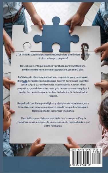Hermanos en armonía: Un plan de una semana para acabar con las rivalidades y fomentar la amistad ¿Sus hijos discuten constantemente y usted se siente como un árbitro a tiempo completo? Descubra un método práctico y probado para transformar los conflictos entre hermanos en cooperación, ¡en sólo 7 días! En Hermanos en armonía encontrará un plan sencillo, paso a paso, diseñado para padres ocupados que quieren paz en casa sin gritos, culpas ni sermones interminables. Tanto si sus hijos son pequeños como adolescentes, esta guía de una semana le proporcionará las herramientas necesarias para cambiar la dinámica de la rivalidad al respeto. En este libro aprenderá a: - Comprender las causas fundamentales de la rivalidad entre hermanos y cómo detenerla antes de que empiece. - Utilizar rituales de conexión diarios de 10 minutos que fomenten la confianza y la empatía entre hermanos. - Establecer límites claros y coherentes sin ser el malo de la película. - Resolver los conflictos utilizando estrategias tranquilas y constructivas que realmente funcionan. - Fomente vínculos duraderos que conviertan las discusiones en trabajo en equipo Respaldado por conocimientos psicológicos y ejemplos del mundo real, este libro ofrece un enfoque compasivo pero firme que funciona para familias de todas las formas y tamaños. Si está listo para disfrutar de más risas, cooperación y conexión en casa, este plan de una semana es su camino hacia la paz entre hermanos.