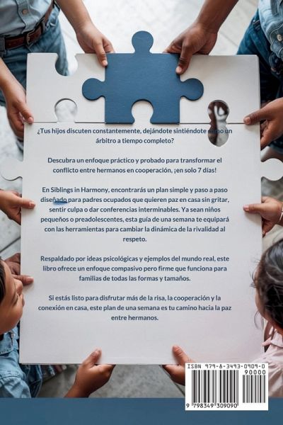 Hermanos en armonía: Un plan de una semana para acabar con las rivalidades y fomentar la amistad ¿Sus hijos discuten constantemente y usted se siente como un árbitro a tiempo completo? Descubra un método práctico y probado para transformar los conflictos entre hermanos en cooperación, ¡en sólo 7 días! En Hermanos en armonía encontrará un plan sencillo, paso a paso, diseñado para padres ocupados que quieren paz en casa sin gritos, culpas ni sermones interminables. Tanto si sus hijos son pequeños como adolescentes, esta guía de una semana le proporcionará las herramientas necesarias para cambiar la dinámica de la rivalidad al respeto. En este libro aprenderá a: - Comprender las causas fundamentales de la rivalidad entre hermanos y cómo detenerla antes de que empiece. - Utilizar rituales de conexión diarios de 10 minutos que fomenten la confianza y la empatía entre hermanos. - Establecer límites claros y coherentes sin ser el malo de la película. - Resolver los conflictos utilizando estrategias tranquilas y constructivas que realmente funcionan. - Fomente vínculos duraderos que conviertan las discusiones en trabajo en equipo Respaldado por conocimientos psicológicos y ejemplos del mundo real, este libro ofrece un enfoque compasivo pero firme que funciona para familias de todas las formas y tamaños. Si está listo para disfrutar de más risas, cooperación y conexión en casa, este plan de una semana es su camino hacia la paz entre hermanos.
