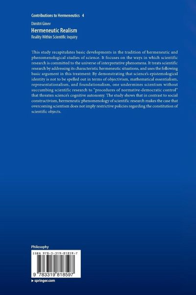 This study recapitulates basic developments in the tradition of hermeneutic and phenomenological studies of science. It focuses on the ways in which scientific research is committed to the universe of interpretative phenomena. It treats scientific research by addressing its characteristic hermeneutic situations, and uses the following basic argument in this treatment: By demonstrating that science's epistemological identity is not to be spelled out in terms of objectivism, mathematical essentialism, representationalism, and foundationalism, one undermines scientism without succumbing scientific research to "procedures of normative-democratic control" that threaten science's cognitive autonomy. The study shows that in contrast to social constructivism, hermeneutic phenomenology of scientific research makes the case that overcoming scientism does not imply restrictive policies regarding the constitution of scientific objects.