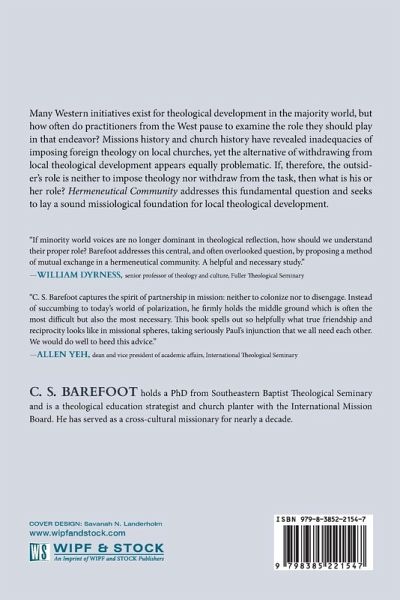 Many Western initiatives exist for theological development in the majority world, but how often do practitioners from the West pause to examine the role they should play in that endeavor? Missions history and church history have revealed inadequacies of imposing foreign theology on local churches, yet the alternative of withdrawing from local theological development appears equally problematic. If, therefore, the outsider's role is neither to impose theology nor withdraw from the task, then what is his or her role? Hermeneutical Community addresses this fundamental question and seeks to lay a sound missiological foundation for local theological development.