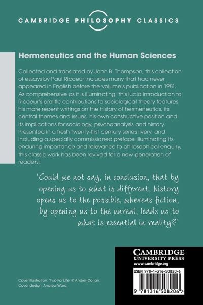 Preface to this edition Charles Taylor Acknowledgements Editor's introduction Notes on editing and translating A response Paul Ricoeur Part I. Studies in the History of Hermeneutics: 1. The task of hermeneutics 2. Hermeneutics and the critique of ideology 3. Phenomenology and hermeneutics Part II. Studies in the Theory of Interpretation: 4. The hermeneutical function of distanciation 5. What is a text? Explanation and understanding 6. Metaphor and the central problem of hermeneutics 7. Appropriation Part III. Studies in the Philosophy of Social Science: 8. The model of the text: meaningful action considered as a text 9. Science and ideology 10. The question of proof in Freud's psychoanalytic writings 11. The narrative function Notes Select bibliography Index.