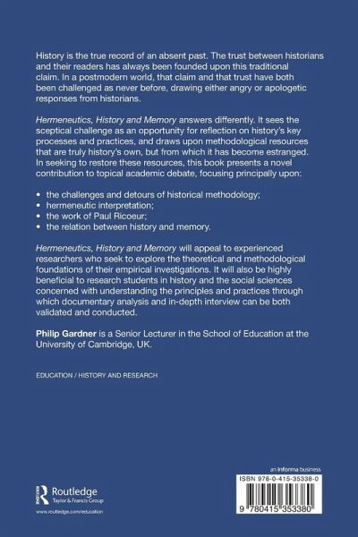 History is the true record of an absent past. The trust between historians and their readers has always been founded upon this traditional claim. In a postmodern world, that claim and that trust have both been challenged as never before, drawing either angry or apologetic responses from historians. Hermeneutics, History and Memory answers differently. It sees the sceptical challenge as an opportunity for reflection on history's key processes and practices, and draws upon methodological resources that are truly history's own, but from which it has become estranged. In seeking to restore these resources, to return history to its roots, this book presents a novel contribution to topical academic debate, focusing principally upon: the challenges and detours of historical methodology hermeneutic interpretation in history the work of Paul Ricoeur the relation between history and memory. Hermeneutics, History and Memory will appeal to experienced historical researchers who seek to explore the theoretical and methodological foundations of their empirical investigations. It will also be highly beneficial to research students in history and the social sciences concerned with understanding the principles and practices through which documentary analysis and in-depth interview can be both validated and conducted.