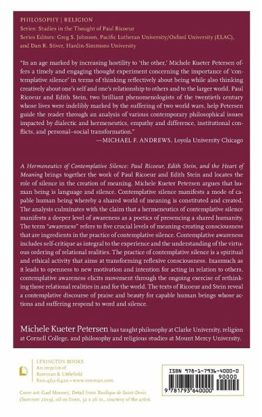 This book probes the texts of Paul Ricoeur and Edith Stein to disclose the role of silence in the creation of meaning. To understand and live out of contemplative awareness as a way to think through transformative human experience is an ethical and spiritual task, one that warrants explanation and interpretation.