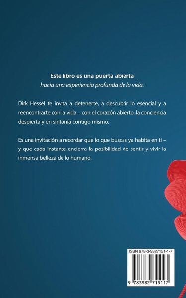 ¿Alguna vez sientes que falta algo, incluso cuando todo parece estar en su lugar? Que la vida funciona, pero de algún modo carece de profundidad? Este libro es para ti si anhelas paz interior, un sentido más allá de los conceptos - y a ti mismo. Dirk Hessel, maestro espiritual, autor y exitoso creador en YouTube con más de 2,3 millones de visualizaciones, ha acompañado a miles de personas hacia una mayor claridad y presencia. Con una precisión suave y un lenguaje claro y cercano, te invita a descubrir lo que nunca has perdido realmente: tu propio ser. Ya eres completo - solo lo has olvidado. Hay momentos en la vida en los que brilla una belleza silenciosa - una presencia más allá de toda palabra. Este libro abre el espacio para redescubrir justamente eso: la esencia de tu ser. La vida es como un río que fluye a través de cada momento. Cuando aprendemos a fluir con él, sin intentar controlarlo, incluso lo cotidiano se vuelve sagrado. En este libro encontrarás: ¿ Perspectivas profundas sobre tu verdadera naturaleza - más allá del dogmä Impulsos claros para integrar la espiritualidad en la vida cotidianä Un camino hacia la paz interior que toca el corazón y la mente¿ Una nueva mirada sobre el ser humano - como expresión de verdad, belleza y presencia Este libro no exige nada, no promete nada - simplemente te recuerda quién eres. Gracias por su pequeño libro milagroso, señor Hessel. Quien se abre a él, puede volverse verdaderamente rico. - Nina Ruge, periodista y autora alemana