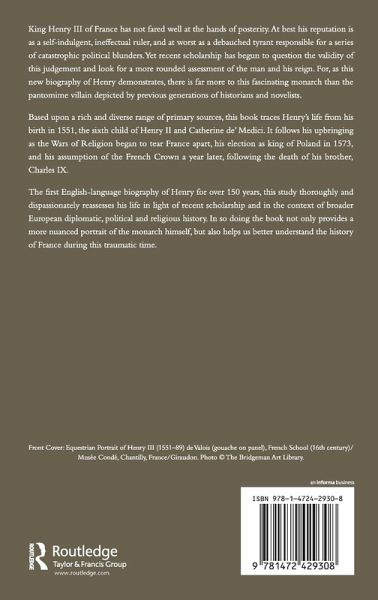 King Henry III of France has not suffered well at the hands of posterity. Generally depicted as at best a self-indulgent, ineffectual ruler, and at worst a debauched tyrant responsible for a series of catastrophic political blunders, his reputation has long been a poor one. Yet recent scholarship has begun to question the validity of this judgment and look for a more rounded assessment of the man and his reign. For, as this new biography of Henry demonstrates, there is far more to this fascinating monarch than the pantomime villain depicted by previous generations of historians and novelists. Based upon a rich and diverse range of primary sources, this book traces Henry's life from his birth in 1551, the sixth child of Henri II and Catherine de' Medici. It following his upbringing as the Wars of Religion began to tear France apart, his election as king of Poland in 1573, and his assumption of the French crown a year later following the death of his brother Charles IX. The first English-language biography of Henry for over 150 years, this study thoroughly and dispassionately reassesses his life in light of recent scholarship and in the context of broader European diplomatic, political and religious history. In so doing the book not only provides a more nuanced portrait of the monarch himself, but also helps us better understand the history of France during this traumatic time.