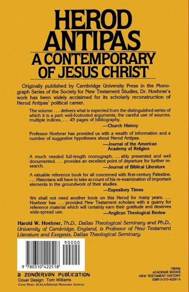 Originally published by Cambridge University Press in the Monograph Series of the Society for New Testament Studies, Dr. Hoehnerâ s work has been widely acclaimed for its scholarly reconstruction of Herod Antipasâ political career.