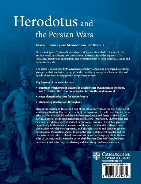 An exciting series that provides students with direct access to the ancient world by offering new translations of extracts from its key texts. Herodotus, writing in the second half of the 5th century BC, is the first historian of western civilisation. His narrative tells of the expansion of the Persian Empire in the 6th and 5th centuries BC and the wars between Greece and Persia in 490 and 480 BC. Some of the most famous battles of history, Marathon, Thermopylae and Salamis, are dramatically described in his work. His purpose is to explain why the wars happened and his sophisticated and complex answer encompasses the relation of gods to men, the nature of different peoples and the character of individuals.