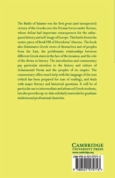 Book VIII of Herodotus' Histories covers the early part of the unsuccessful invasion of Greece by Xerxes, king of Persia. Its centre-piece is the unexpected but crucial Greek naval victory at Salamis. This edition provides all the help required by a reader with little experience of Greek.