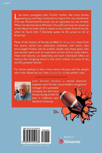 Like every youngster, John Durbin Husher had many heroes growing up, and they continued to inspire him into adulthood. If he saw Muhammad Ali knock out an opponent, he was thrilled. When he learned about Winston Churchill and how he stood up to the Nazis, he knew what it meant to be a leader.And of course, when he heard John F. Kennedy speak, he felt proud to be an American. Many of the dozens of heroes profiled in Heroes Afar come from the sports world, but politicians, scientists, and actors also encouraged Husher, and he artfully reveals why these great men and women were such an inspiration to him and so many others. Filled with lessons on leadership and each individual's effect on history, this intriguing work is one man's tribute to some of the world's greatest heroes. For those seeking to learn more about the past and the people who have influenced our lives, Heroes Afar is the perfect read.