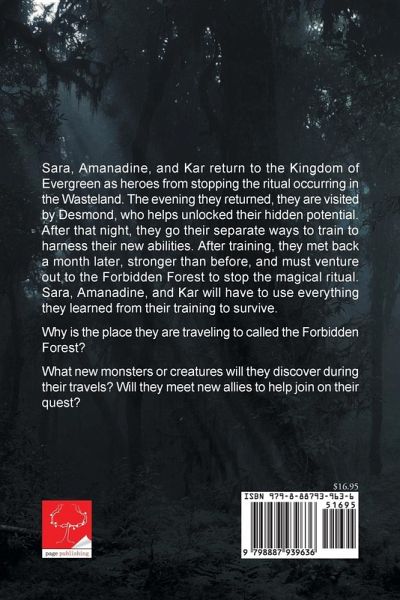 Sara, Amanadine, and Kar return to the Kingdom of Evergreen as heroes from stopping the ritual occurring in the Wasteland. The evening they returned, they are visited by Desmond, who helps unlocked their hidden potential. After that night, they go their separate ways to train to harness their new abilities. After training, they met back a month later, stronger than before, and must venture out to the Forbidden Forest to stop the magical ritual. Sara, Amanadine, and Kar will have to use everything they learned from their training to survive. Why is the place they are traveling to called the Forbidden Forest? What new monsters or creatures will they discover during their travels? Will they meet new allies to help join on their quest?