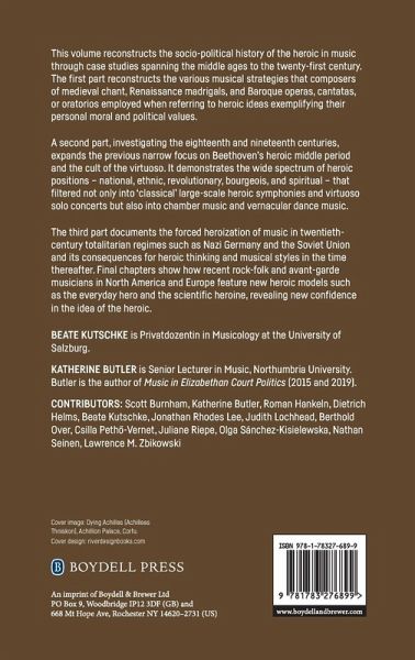 The first part of this volume reconstructs the various musical strategies that composers of medieval chant, Renaissance madrigals, and Baroque operas, cantatas or oratorios employed when referring to heroic ideas exemplifying their personal moral and political values. A second part investigating the eighteenth and nineteenth centuries expands the previous narrow focus on Beethoven's heroic middle period and the cult of the virtuoso. It demonstrates the wide spectrum of heroic positions - national, ethnic, revolutionary, bourgeois and spiritual - that filtered not only into 'classical' large-scale heroic symphonies and virtuoso solo concerts, but also into chamber music and vernacular dance music. The third part documents the forced heroization of music in twentieth-century totalitarian regimes such as Nazi-Germany and the Soviet Union and its consequences for heroic thinking and musical styles in the time thereafter. Final chapters show how recent rock-folk and avant-garde musicians in North America and Europe feature new heroic models such as the everyday hero and the scientific heroine revealing new confidence in the idea of the heroic.