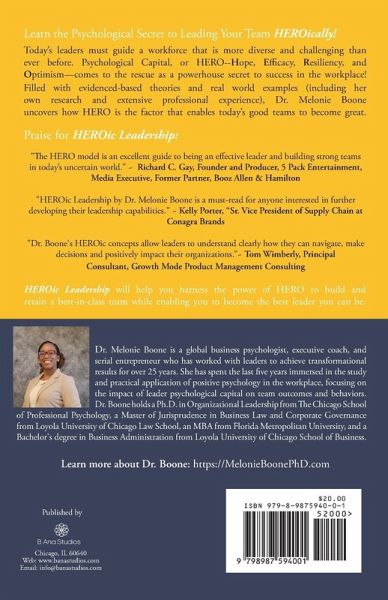 Today's leaders must guide a workforce that is more diverse and challenging than ever before. Psychological Capital, or HERO--Hope, Efficacy, Resiliency, and Optimism-comes to the rescue as a powerhouse secret to success in the workplace! ¿Filled with evidenced-based theories and real world examples (including her own research and extensive professional experience), Dr. Melonie Boone uncovers how HERO is the factor that enables today's good teams to become great. Inside HEROic Leadership you'll learn:How building HERO in yourself and your team supercharges performance Telltale signs you have HERO or need more of it on your team Strategies to become more HEROic and increase your team's HERO Ways to introduce the concepts of HERO to your team ·An assessment and analysis for you and your team to determine HERO levels HEROic Leadership will help you harness the power of HERO to build and retain a best-in-class team while enabling you to become the best leader you can be.