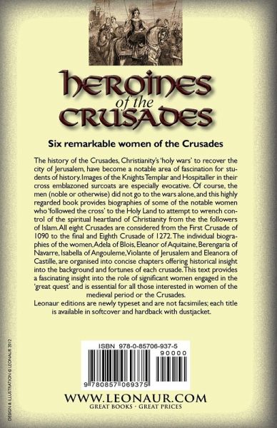 Six remarkable women of the Crusades The history of the Crusades, Christianity's 'holy wars' to recover the city of Jerusalem, have become a notable area of fascination for students of history. Images of the Knights Templar and Hospitaller in their cross emblazoned surcoats are especially evocative. Of course, the men (noble or otherwise) did not go to the wars alone, and this highly regarded book provides biographies of some of the notable women who 'followed the cross' to the Holy Land to attempt to wrench control of the spiritual heartland of Christianity from the the followers of Islam. All eight Crusades are considered from the First Crusade of 1090 to the final and Eighth Crusade of 1272. The individual biographies of the women, Adela of Blois, Eleanor of Aquitaine, Berengaria of Navarre, Isabella of Angouleme, Violante of Jerusalem and Eleanora of Castille, are organised into concise chapters offering historical insight into the background and fortunes of each crusade. This text provides a fascinating insight into the role of significant women engaged in the 'great quest' and is essential for all those interested in women of the medieval period or the Crusades. Leonaur editions are newly typeset and are not facsimiles; each title is available in softcover and hardback with dustjacket.