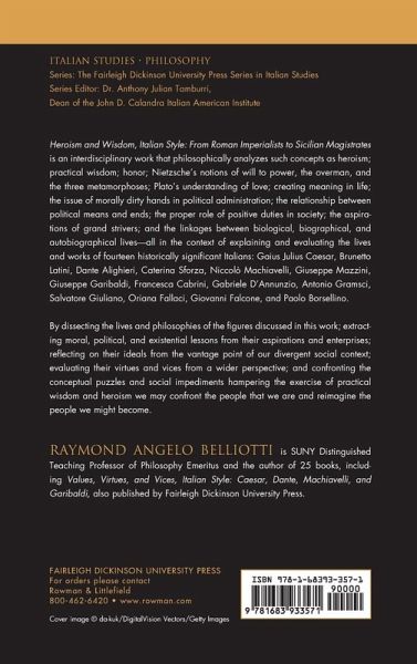 This is an interdisciplinary work that philosophically analyzes concepts such as heroism; practical wisdom; honor; Nietzsche's notions of will to power, the overman, and the three metamorphoses; Plato's understanding of love; creating meaning in life; the issue of morally dirty hands in political administration; the relationship between political means and ends; the proper role of positive duties in society; the aspirations of grand strivers; and the linkages between biological, biographical, and autobiographical lives, all in the context of explaining and evaluating the lives and works of fourteen historically significant Italian: Gaius Julius Caesar, Brunetto Latini, Dante Alighieri, Caterina Sforza, Niccolò Machiavelli, Giuseppe Mazzini, Giuseppe Garibaldi, Francesca Cabrini, Gabriele D'Annunzio, Antonio Gramsci, Salvatore Giuliano, Oriana Fallaci, Giovanni Falcone, and Paolo Borsellino. By dissecting the lives and philosophies of the figures discussed in this work, by extracting moral, political, and existential lessons from their aspirations and enterprises, by reflecting on their ideals from the vantage point of our divergent social context, by evaluating their virtues and vices from a wider perspective, and by confronting the conceptual puzzles and social impediments hampering the exercise of practical wisdom and heroism, we may confront the people that we are and reimagine the people we might become.