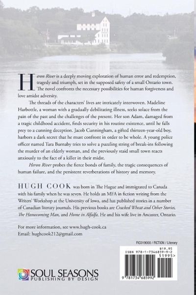 Heron River is a deeply moving exploration of human error and redemption, tragedy and triumph, set in the supposed safety of a small Ontario town. The novel confronts the necessary possibilities for human forgiveness and love amidst adversity. The threads of the characters' lives are intricately interwoven. Madeline Harbottle, a woman with a gradually debilitating illness, seeks solace from the pain of the past and the challenges of the present. Her son Adam, damaged from a tragic childhood accident, finds security in his routine existence, until he falls prey to a cunning deception. Jacob Cunningham, a gifted thirteen-year-old boy, harbors a dark secret that he must confront in order to be whole. A young police officer named Tara Burnaby tries to solve a puzzling string of break-ins following the murder of an elderly woman, and the previously staid small town reacts anxiously to the fact of a killer in their midst. Heron River probes the fierce bonds of family, the tragic consequences of human failure, and the persistent reverberations of history and memory.