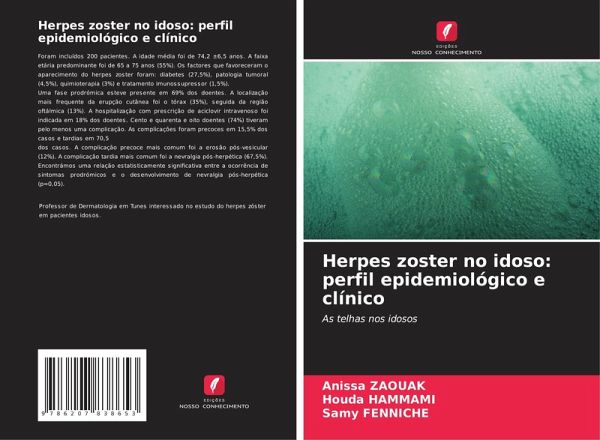 Foram incluídos 200 pacientes. A idade média foi de 74,2 ±6,5 anos. A faixa etária predominante foi de 65 a 75 anos (55%). Os factores que favoreceram o aparecimento do herpes zoster foram: diabetes (27,5%), patologia tumoral (4,5%), quimioterapia (3%) e tratamento imunossupressor (1,5%).Uma fase prodrómica esteve presente em 69% dos doentes. A localização mais frequente da erupção cutânea foi o tórax (35%), seguida da região oftálmica (13%). A hospitalização com prescrição de aciclovir intravenoso foi indicada em 18% dos doentes. Cento e quarenta e oito doentes (74%) tiveram pelo menos uma complicação. As complicações foram precoces em 15,5% dos casos e tardias em 70,5dos casos. A complicação precoce mais comum foi a erosão pós-vesicular (12%). A complicação tardia mais comum foi a nevralgia pós-herpética (67,5%). Encontrámos uma relação estatisticamente significativa entre a ocorrência de sintomas prodrómicos e o desenvolvimento de nevralgia pós-herpética (p=0,05).