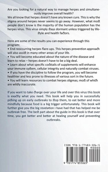 Are you looking for a natural way to manage herpes and simultaneously improve overall health? We all know that herpes doesn't have any known cure. This is why the stigma around herpes never seems to go away. However, what most people don't know is the majority of the human population has the herpes virus. This virus simply stays dormant unless triggered by lifestyle and health factors. Here are some of the results you can experience through this program: End reoccurring herpes flare-ups. This herpes prevention approach will also assist in many other areas of your life. You will become educated about the nature of the disease and learn to relax - herpes doesn't have to be a big deal. Learn about what specific cocktails of supplements will enhance your immune system, cellular integrity and naturally combat viruses. If you have the discipline to follow the program, you will become healthier and less prone to illnesses of various sort in the future. You will learn resources to combat herpes stigmas; most of which are wildly inaccurate. If you want to take charge over your life and over this virus this book is exactly what you need. This book will help you in successfully picking up on early outbreaks to stop them, to eat better and more mindfully because food is a big trigger unfortunately. This book will further give you the big revelation i have had that has helped me be outbreak free. The best part about the guide in this book is that over time, you get better and better at healing yourself and preventing outbreaks.