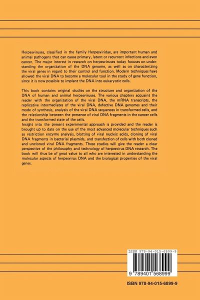 1. Introduction: Current trends in herpesvirus DNA research (a review).- 2. Structure of HSV-1 DNA at the joint regions.- 3. Immediate-early transcription of HSV-1 and HS.- 4. Isolation and characterization of HSV-1 mRNA.- 5. Properties of the replicating HSV DNA.- 6. Electron microscopy of branched HSV DNA molecules: Possible recombination intermediates.- 7. Replication of HSV-1 DNA: Isolation of a subnuclear DNA synthesizing fraction.- 8. Tandem repeat defective DNA from the L segment of the HSV genome.- 9. Structure and physical mapping of different classes of defective HSV-1 ANG DNA.- 10. Structure and expression of Class I and II defective interfering HSV genomes.- 11. Biosynthesis of defective HSV DNA.- 12. Mapping of the HSV sequences in transformed cells.- 13. Transfection with HSV DNA fragments and DNA from HSV transformed cells.- 14. Viral genes in HSV transformed cells as detected genetically.- 15. Identification, cloning and sequencing of the HSV thymidine kinas genes.- 16. Assignment of Epstein-Barr virus-determined nuclear antigen (EBNA) gene to chromosome 14 in human lympnoblastoid cells.- 17. Organization of the human cytomegalovirus genome.- 18. DNA of Tupaia herpesviruses.- 19. Organization and replication of pseudorabies virus DNA.- 20. Equine herpesviruses: Biochemical studies on genomic structure, DI particles, oncogenic transformation and persistent infection.- 21. Organization of integrated herpesvirus DNA sequences in equine herpesvirus type 1 transformed and tumor cell lines.- 22. Organization and expression of the DNA of Marek's disease virus (MDV) and of herpesvirus of turkeys.