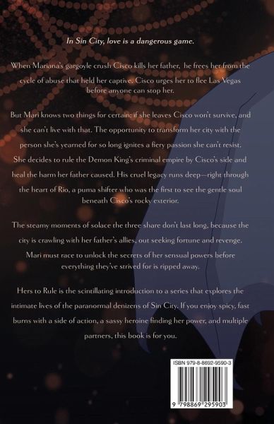 In Sin City, love is a dangerous game. When Mariana's gargoyle crush Cisco kills her father, he frees her from the cycle of abuse that held her captive. Cisco urges her to flee Las Vegas before anyone can stop her. But Mari knows two things for certain: if she leaves Cisco won't survive, and she can't live with that. The opportunity to transform her city with the person she's yearned for so long ignites a fiery passion she can't resist. She decides to rule the Demon King's criminal empire by Cisco's side and heal the harm her father caused. His cruel legacy runs deep-right through the heart of Rio, a puma shifter who was the first to see the gentle soul beneath Cisco's rocky exterior. The steamy moments of solace the three share don't last long, because the city is crawling with her father's allies, out seeking fortune and revenge. Mari must race to unlock the secrets of her sensual powers before everything they've strived for is ripped away. Hers to Rule is the scintillating introduction to a series that explores the intimate lives of the paranormal denizens of Sin City. If you enjoy spicy, fast burns with a side of action, a sassy heroine finding her power, and multiple partners, this book is for you.