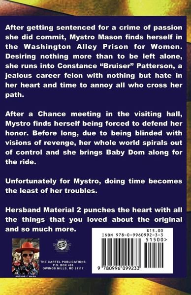 After getting sentenced for a crime of passion she did commit, Mystro Mason finds herself in the Washington Alley Prison for Women. Desiring nothing more than to be left alone, she runs into Constance "Bruiser" Patterson, a jealous career felon with nothing but hate in her heart and time to annoy her. After a Chance meeting in the visiting hall, Mystro finds herself being forced to defend her honor. Before long, as she's so blind with revenge, her whole world spirals out of control and she brings Baby Dom along for the ride. Unfortunately for Mystro, doing time becomes the least of her troubles. Hersband Material 2 punches the heart with all the things that you loved about the original and so much more.