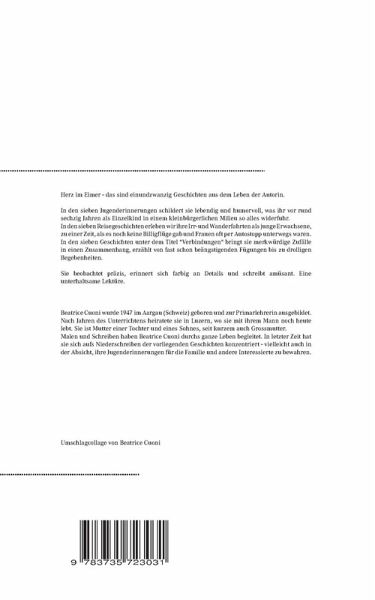 Herz im Eimer - das sind einundzwanzig Geschichten aus dem Leben der Autorin. In den sieben Jugenderinnerungen schildert sie lebendig und humorvoll, was ihr vor rund sechzig Jahren als Einzelkind in einem kleinbürgerlichen Milieu so alles widerfuhr.In den sieben Reisegeschichten erleben wir ihre Irr- und Wanderfahrten als junge Erwachsene, zu einer Zeit, als es noch keine Billigflüge gab und Frauen oft per Autostopp unterwegs waren.In den sieben Geschichten unter dem Titel Verbindungen bringt sie merkwürdige Zufälle in einen Zusammenhang, erzählt von fast schon beängstigenden Fügungen bis zu drolligen Begebenheiten.Sie beobachtet präzis, erinnert sich farbig an Details und schreibt amüsant. Eine unterhaltsame Lektüre.
