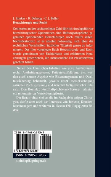Dieses Buch richtet sich an die im Fachgebiet tätigen Chirurgen, birgt aber auch für Beteiligte wie etwa Juristen oder Krankenhausmanager wertvolle Informationen über wichtige Aspekte des rechtlichen Rahmens herzchirurgischer Tätigkeit. Gemessen an der Zahl jährlich durchgeführter herzchirurgischer Operationen sind Haftungsansprüche gegenüber operierender Herzchirurgen noch relativ selten. Nichtsdestotrotz ist es absolut notwendig, sich über die rechtlichen Vorschriften genau zu informieren. Dieses Werk wurde gemeinsam von Fachjuristen und erfahrenen Herzchirurgen konzipiert und geschrieben, die insbesondere auf Praxisrelevanz geachtet haben. Neben den klassischen Inhalten wie etwa Arzthaftungsrecht, Arzthaftungsprozess, Patientenaufklärung, etc. werden auch neuere Aspekte wie Riskmanagement und Qualitätssicherung behandelt, jeweils unter Berücksichtigung aktueller Rechtsprechung und rezenter fachjuristischer Literatur. Den Komplex "Arzthaftpflichtversicherung" erläutert ein renommierter Versicherungsjurist.