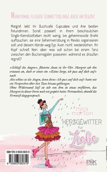 Manchmal fliegen Schmetterlinge auch im Regen! Aber was tust du, wenn dir klar wird, dass sich deine Herzensmenschen gegen dich verschworen haben?Erst findet die eigenwillige Margret Landauer ihr Single-Kleinstadtleben etwas zu beschaulich. Zwar liebt sie ihr Buchcafé, Cupcakes und ihre besten Freundinnen, aber gerade die haben immer weniger Zeit für ein Treffen in Lottes Laden. Doch dann wird es mit einem Schlag turbulent!Sie erhält geheimnisvolle Briefe von einem Fremden, soll heimlich eine Verlobung in Mexiko organisieren und läuft rein zufällig auch noch Avan Wulf über den Weg. Der Bruder ihrer neuen Busenfreundin Mia ist jedoch definitiv ein Hände-weg-Typ. Zu attraktiv, nur auf der Durchreise und anscheinend ohne echten Beruf. Blöd, dass ihr Herz das anders sieht und sie nicht in die Zukunft blicken kann. Noch weiß Margret nämlich nichts von dem Netz aus Lügen und Geheimnissen, das nicht nur Avan um sie herum gesponnen hat.Als er eines Tages bei Regen an ihre Tür klopft und mit ihr zwischen den Bücherregalen zu tanzen beginnt, trifft ihr Herz daher eine folgenschwere Entscheidung, wegen der sie vielleicht all die Menschen verliert, die sie liebt ...»Schließ die Augen«, flüsterte Avan in ihr Ohr. Margret sah ihn erstaunt an, doch er setzte ein »Keine Sorge, ich pass auf dich auf« nach.Also schloss sie die Augen, denn dieses 'Ich pass auf dich auf' hatte wie ein Versprechen über den Tanz hinaus geklungen. Ohne Widerstand ließ sie sich von ihm in etwas entführen, das Margret in dieser Form noch nie gespürt hatte: Vertrautheit, obwohl die Vernunft dagegensprach.In der neuen, romantischen Liebesgeschichte rund um ein kleines Buchcafé von Bestsellerautorin Mira Morton geht es um Freundschaft, aber auch um Lügen und Geheimnisse, die alles zerstören können - selbst die große Liebe. Der etwas andere Boss-Roman ist in sich abgeschlossen und spielt in einem kleinen Buchladen sowie vor der traumhaften Kulisse der Karibik in Tulum, Mexiko.Die Romanreihe 'Lottes Laden: Zauberhaftes Buchcafé' im Überblick:Prequel (Band 1): Schiffbruch für die LiebeBand 2: Zwei Tage HimmelBand 3: Herzprickeln im ParadiesBand 4: Herzgewitter für die Liebe