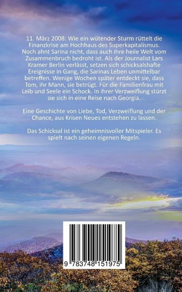 11. März 2009: Wie ein wütender Sturm rüttelt die Finanzkrise am Hochhaus des Superkapitalismus. Noch ahnt Sarina nicht, dass auch ihre heile Welt vom Zusammenbruch bedroht ist. Als der Journalist Lars Kramer Berlin verlässt, setzen sich schicksalshafte Ereignisse in Gang, die Sarinas Leben unmittelbar betreffen. Wenige Wochen später entdeckt sie, dass Tom, ihr Mann, sie betrügt. Für die Familienfrau mit Leib und Seele ein Schock. In ihrer Verzweiflung stürzt sie sich in eine Reise nach Georgia.Eine Geschichte von Liebe, Tod, Verzweiflung und der Chance, aus Krisen Neues entstehen zu lassen.Das Schicksal ist ein geheimnisvoller Mitspieler. Es spielt nach seinen eigenen Regeln.