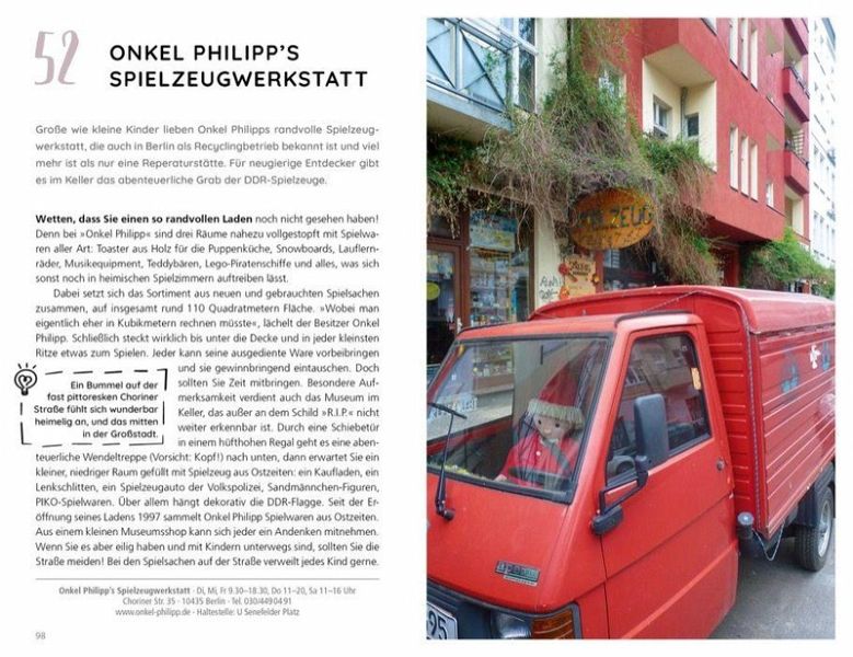 Entdecken Sie die Herzstücke Berlins: Weit weg von Touristenströmen zeigt Ihnen dieser Reiseführer, wo sie das wahre Berlin kennenlernen können - egal, ob als Einheimischer oder Tourist. Bei Ausflügen in der Natur, in Kulturstätten und Veranstaltungen, im neuen kleinen Lieblingsladen oder bei einem köstlichen Stück Kuchen im gemütlichen Café - hier erleben Sie Berlin, wie Sie es noch nicht kennen. Party, Berliner Mauer und Co.: Berliner Klischees sind über die Grenzen der Stadt bekannt - wer denkt, dass Berlin nicht mehr zu bieten hat, wird von diesem Buch eines Besseren belehrt. Abseits bekannter Wege warten kleine und große Highlights und Geheimnisse, die Touristen und Einheimischen einen neuen Blick auf die Stadt ermöglichen. Feiern Sie in der kleinsten Disko der Welt oder genießen Sie ein heißes Getränk in der Tadshikischen Teestube.