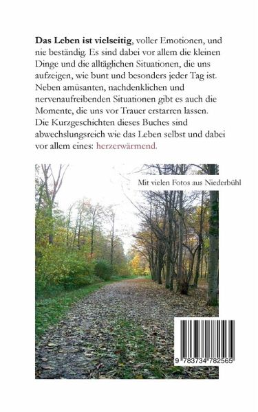 Das Leben ist vielseitig, voller Emotionen, und nie beständig. Es sind dabei vor allem die kleinen Dinge und die alltäglichen Situationen, die uns aufzeigen, wie bunt und besonders jeder Tag ist. Neben amüsanten, nachdenklichen und nervenaufreibenden Situationen gibt es auch die Momente, die uns vor Trauer erstarren lassen. Die Kurzgeschichten dieses Buches sind abwechslungsreich wie das Leben selbst und dabei vor allem eines: herzerwärmend.