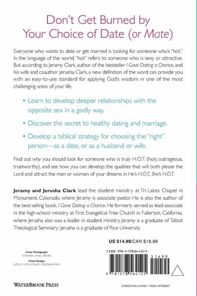 Don't Get Burned by Your Choice of Date (or Mate) Everyone who wants to date or get married is looking for someone who's "hot.” In the language of the world, "hot” refers to someone who is sexy or attractive. But according to Jeramy Clark, author of the bestseller I Gave Dating a Chance, and his wife and coauthor Jerusha Clark, a new definition of the word can provide you with an easy-to-use standard for applying God's wisdom in one of the most challenging areas of your life. LEARN TO DEVELOP DEEPER RELATIONSHIPS WITH THE OPPOSITE SEX IN A GODLY WAY. DISCOVER THE SECRET TO HEALTHY DATING AND MARRIAGE DEVELOP A BIBLICAL STRATEGY FOR CHOOSING THE "RIGHT” PERSON-AS A DATE, OR AS A HUSBAND OR WIFE. Find out why you should look for someone who is truly H.O.T. (holy, outrageous, trustworthy), and see how you can develop the qualities that will both please the Lord and attract the man or woman of your dreams in He's H.O.T., She's H.O.T.