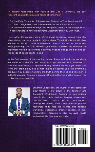 Your Time is Precious...Let No Man Waste It. ¿ Do You Fight Thoughts of Suspicion or Distrust in Your Relationship?¿ Is There a Huge Disconnect Between His Actions & His Words?¿ Do You Wonder Why He Says One Thing and Does the Total Opposite?¿ Need Answers to Your Relationship Questions that You Can Trust?He's Lying Sis exposes some of the most deceptive games men play when dating and even while in relationships. This dating book will allow women to connect the dots between a man's actions and his words. Stop guessing. Get the answers you need to make the decision on moving forward in love or find out if you need to dodge the bait and cut the cords of deception for good. In the first volume of an ongoing series, Stephan Speaks shows single women how to identify and avoid the traps men set that often lead to hurt and heartbreak. Stephan's dating advice will help you stay free from the drama any lies a man might be telling you, will eventually produce. You deserve to know the truth behind the lies and why men lie in the first place. Enough is enough. Knowing the truth will empower you to live out your best life.
