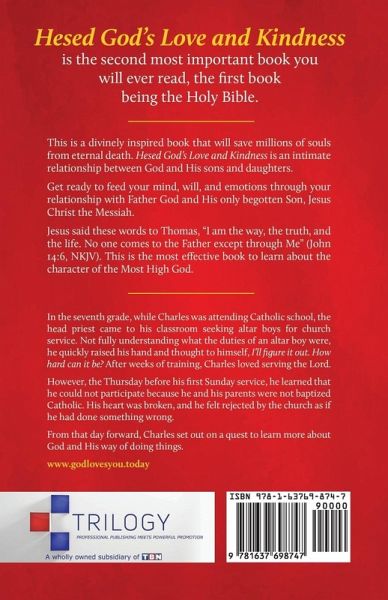 Hesed God's Love and Kindness is the second most important book you will ever read, the first book being the Holy Bible. This is a divinely inspired book that will save millions of souls from eternal death. Hesed God's Love and Kindness is an intimate relationship between God and His sons and daughters. Get ready to feed your mind, will, and emotions through your relationship with Father God and His only begotten Son, Jesus Christ the Messiah. Jesus said these words to Thomas, "I am the way, the truth, and the life. No one comes to the Father except through Me" (John 14:6, NKJV). This is the most effective book to learn about the character of the Most High God.