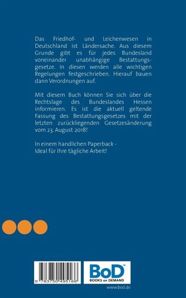 Das Friedhof- und Leichenwesen in Deutschland ist Ländersache. Aus diesem Grunde gibt es für jedes Bundesland voneinander unabhängige Bestattungsgesetze. In diesen werden alle wichtigen Regelungen festgeschrieben. Hierauf bauen dann Verordnungen auf.Mit diesem Buch können Sie sich über die Rechtslage des Bundeslandes Hessen informieren. Es ist die aktuell geltende Fassung des Bestattungsgesetzes mit der letzten zurückliegenden Gesetzesänderung vom 23. August 2018!In einem handlichen Paperback - Ideal für Ihre tägliche Arbeit!