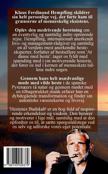 Klaus Ferdinand Hempfling skildrer sin helt personlige vej, der førte ham til grænserne af menneskelig eksistens. Oplev den medrivende beretning om en eventyrlig og samtidig indre oprørende rejse. Hempfling, internationalt anerkendt livs- og management-rådgiver og samtidig en af verdens mest anerkendte hesteeksperter, forfatter af bestsellere som 'At danse med heste', tager os fyldt med spænding med i sin motiverende historie, der fører os ind i kernen af menneskets tidløse indre søgen. Gennem hans helt usædvanlige møde med vilde heste i de spanske Pyrenæers rå natur og gennem mødet med en tilbagetrukket munk erfarer han en dybdegående transformation og finder sin autentiske væsenskerne og livsvej. 'Hestenes Budskab' er en bog fuld af inspirerende erkendelser og visdom. Den berører og motiverer i lige mål, samtidig med at den opfordrer os til at sætte spørgsmålstegn ved os selv og udforske vores eget potentiale.