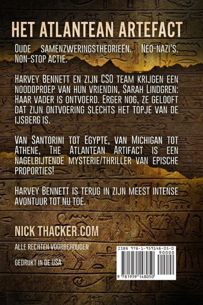 Oude samenzweringstheorieën. Neo-nazi's. Non-stop actie. Harvey Bennett en zijn CSO team krijgen een noodoproep van hun vriendin, Sarah Lindgren: Haar vader is ontvoerd. Erger nog, ze gelooft dat zijn ontvoering slechts het topje van de ijsberg is. Van Santorini tot Egypte, van Michigan tot Athene, The Atlantean Artifact is een nagelbijtende mysterie/thriller van epische proporties! Harvey Bennett is terug in zijn meest intense avontuur tot nu toe.