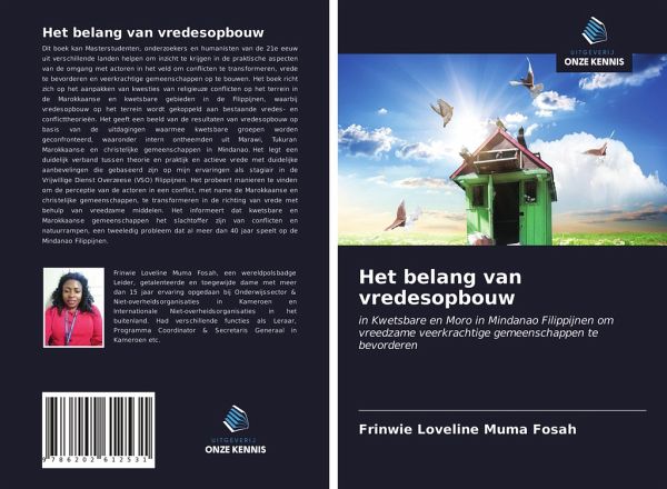Dit boek kan Masterstudenten, onderzoekers en humanisten van de 21e eeuw uit verschillende landen helpen om inzicht te krijgen in de praktische aspecten van de omgang met actoren in het veld om conflicten te transformeren, vrede te bevorderen en veerkrachtige gemeenschappen op te bouwen. Het boek richt zich op het aanpakken van kwesties van religieuze conflicten op het terrein in de Marokkaanse en kwetsbare gebieden in de Filippijnen, waarbij vredesopbouw op het terrein wordt gekoppeld aan bestaande vredes- en conflicttheorieën. Het geeft een beeld van de resultaten van vredesopbouw op basis van de uitdagingen waarmee kwetsbare groepen worden geconfronteerd, waaronder intern ontheemden uit Marawi, Tukuran Marokkaanse en christelijke gemeenschappen in Mindanao. Het legt een duidelijk verband tussen theorie en praktijk en actieve vrede met duidelijke aanbevelingen die gebaseerd zijn op mijn ervaringen als stagiair in de Vrijwillige Dienst Overzeese (VSO) Filippijnen. Het probeert manieren te vinden om de perceptie van de actoren in een conflict, met name de Marokkaanse en christelijke gemeenschappen, te transformeren in de richting van vrede met behulp van vreedzame middelen. Het informeert dat kwetsbare en Marokkaanse gemeenschappen het slachtoffer zijn van conflicten en natuurrampen, een tweeledig probleem dat al meer dan 40 jaar speelt op de Mindanao Filippijnen.