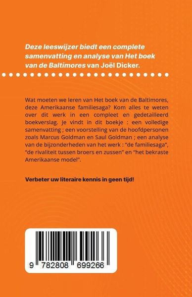 Wat moeten we leren van Het boek van de Baltimores, deze Amerikaanse familiesaga? Kom alles te weten over dit werk in een compleet en gedetailleerd boekverslag. Je vindt in dit boekje : - Een volledige samenvatting - Een voorstelling van de hoofdpersonen zoals Marcus Goldman en Saul Goldman - Een analyse van de bijzonderheden van het werk: de familiesaga, de rivaliteit tussen broers en zussen en het bekraste Amerikaanse model Een referentieanalyse om snel de betekenis van het werk te begrijpen.