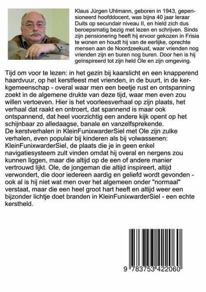 Tijd om voor te lezen: in het gezin bij kaarslicht en een knapperend haardvuur, op het kerstfeest met vrienden, in de buurt, in de kerkgemeenschap - overal waar men een beetje rust en ontspanning zoekt in de algemene drukte van deze tijd, waar men even zou willen vertoeven. Hier is het voorleesverhaal op zijn plaats, het verhaal dat raakt en ontroert, dat spannend is maar ook ontspannend, dat heel voorzichtig een andere kijk opent op het schijnbaar zo alledaagse, banale en vanzelfsprekende. De kerstverhalen in KleinFunixwarderSiel met Ole zijn zulke verhalen, even populair bij kinderen als bij volwassenen: KleinFunixwarderSiel, de plaats die je in geen enkel navigatiesysteem zult vinden omdat hij overal en nergens zou kunnen liggen, maar die altijd op de een of andere manier vertrouwd lijkt. Ole, de jongeman die altijd inspireert, altijd verwondert, die door iedereen aardig en geliefd wordt gevonden - ook al is hij niet wat men over het algemeen onder "normaal" verstaat, maar die een heel groot hart heeft en altijd weer een bijzonder lichtje doet branden in KleinFunixwarderSiel - een echte kerstheld.