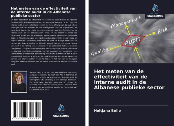 Dit boek beoordeelt de effectiviteit van de interne audit binnen de Albanese publieke sector in overeenstemming met de theorie van Albert et al. (1988) dat interne audit geen berekenbare realiteit is, maar afhangt van de subjectieve meningen van de auditees en het management van de organisaties, en beoordeelt daarom de relatie tussen de metingen van de effectiviteit van de interne audit en de determinanten ervan. In dit onderzoek wordt een uitgebreide schaal voor de effectiviteit van de interne audit binnen de publieke sector in Albanië ontworpen en empirisch getest door middel van correlatie- en regressieanalyse. Daarnaast onderzoekt dit boek de huidige staat van het beroep van interne auditor in Albanië, waarbij het tot op zekere hoogte verschuift in de richting van een nieuwe rol als consultant; het beoordeelt de regelgeving, richtlijnen en wetgeving met betrekking tot de interne auditfunctie in Albanese overheidsorganisaties; en het evalueert het programma voor voortdurende professionele ontwikkeling van interne auditors om hen in staat te stellen hun diensten te verlenen. Dit boek beveelt verdere acties aan om het beroep van interne auditor vooruit te helpen in het licht van de Europese integratie, rekening houdend met de beste internationale aanpak van interne audit.