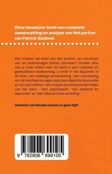 Wat moeten we leren van Het parfum, de cultroman van de hedendaagse Duitse literatuur? Ontdek alles wat je moet weten over dit werk in een compleet en gedetailleerd boekverslag. U vindt in het bijzonder in dit blad : - Een volledige samenvatting - Een voorstelling van de hoofdpersonages zoals Jean-Baptiste Grenouille en zijn slachtoffers - Een analyse van de bijzonderheden van het werk: een psychopaat, zijn obsessie en aspiraties, en een olfactorische vertelling Een referentieanalyse om snel de betekenis van het werk te begrijpen.