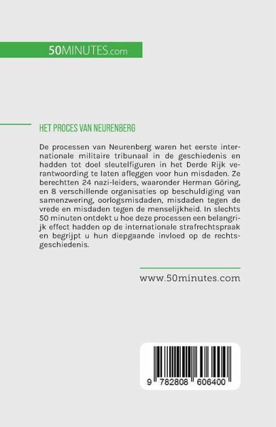 De processen van Neurenberg waren het eerste internationale militaire tribunaal in de geschiedenis en hadden tot doel sleutelfiguren in het Derde Rijk verantwoording te laten afleggen voor hun misdaden. Ze berechtten 24 nazi-leiders, waaronder Herman Göring, en 8 verschillende organisaties op beschuldiging van samenzwering, oorlogsmisdaden, misdaden tegen de vrede en misdaden tegen de menselijkheid. In slechts 50 minuten ontdekt u hoe deze processen een belangrijk effect hadden op de internationale strafrechtspraak en begrijpt u hun diepgaande invloed op de rechtsgeschiedenis. Dit eenvoudige en informatieve boek geeft een grondige bespreking van de sleutelmomenten in deze gespannen processen, waaronder het bewijsmateriaal met betrekking tot het bloedbad van Katyn, de opening van de processen en het lot van de deelnemers. Het bevat ook een volledige biografie van de rechters, een waardevolle inleiding tot de context van de processen en een evaluatie van hun impact op de toekomst van het internationaal recht, waardoor u alle essentiële informatie krijgt over deze cruciale episode in de nasleep van de Tweede Wereldoorlog.