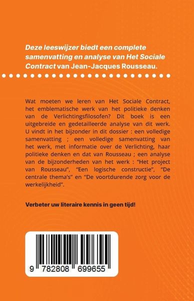Wat moeten we leren van Het Sociale Contract, het emblematische werk van het politieke denken van de Verlichtingsfilosofen? Dit boek is een uitgebreide en gedetailleerde analyse van dit werk. U vindt in het bijzonder in dit dossier : - Een volledige samenvatting - Een volledige samenvatting van het werk, met informatie over de Verlichting, haar politieke denken en dat van Rousseau - Een analyse van de bijzonderheden van het werk: "Het project van Rousseau", "Een logische constructie", "De centrale thema's" en "De voortdurende zorg voor de werkelijkheid". Een referentieanalyse om snel de betekenis van het werk te begrijpen.