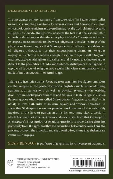 The subject of this book is Shakespeare's investigation of religious ideas and phenomena that, from the Church's perspective, range from traditional orthodox belief to radical unorthodoxy. The book is the first to suggest that Shakespeare accommodates both secular and religious readings by embedding them simultaneously within his plays.
