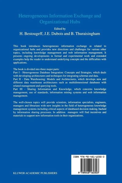 Helene Bestougeff, Universite de Marne Ia Vallee, France Jacques-Emile Dubois, Universite Paris VII-Denis Diderot, France Bhavani Thuraisingham, MITRE Corporation, USA The last fifty years promoted the conceptual trio: Knowledge, Information and Data (KID) to the center of our present scientific technological and human activities. The intrusion of the Internet drastically modified the historical cycles of communication between authors, providers and users. Today, information is often the result of the interaction between data and the knowledge based on their comprehension, interpretation and prediction. Nowadays important goals involve the exchange of heterogeneous information, as many real life and even specific scientific and technological problems are all interdisciplinary by nature. For a specific project, this signifies extracting information, data and even knowledge from many different sources that must be addressed by interoperable programs. Another important challenge is that of corporations collaborating with each other and forming coalitions and partnerships. One development towards achieving this challenge is organizational hubs. This concept is new and still evolving. Much like an airport hub serving air traffic needs, organizational hubs are central platforms that provide information and collaboration specific to a group of users' needs. Now companies are creating hubs particular to certain types of industries. The users of hubs are seen as communities for which all related information is directly available without further searching efforts and often with value-added services.
